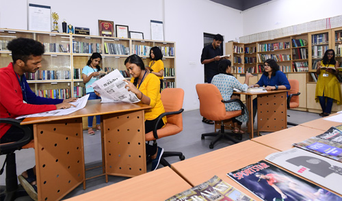 The School has a well-stocked library which also subscribes to major newspapers and magazines. In addition, students can access Malayala Manorama library and digital archives, subject to approval by the Director or the Librarian.